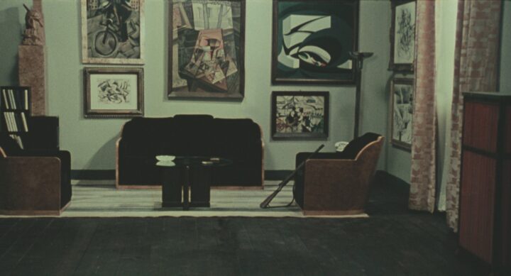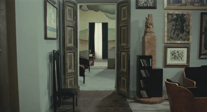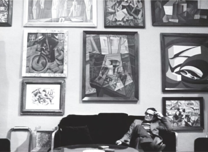 Besides displayed humiliation, torture, and murder, I was immediately struck by how prominent modernist art, especially futuristic painting, was in this film. As an art student, I always associated avant-garde and modernist art with positivism and progressive world views. So, what were these modernist paintings doing in this fascist setting? Are these paintings silent witnesses or accomplices? Did Pasolini denounce the avant-garde for its collaboration with the fascist regime? Or (I don’t think so) did he consider the avant-garde as a victim, abused by these fascist rulers? What connection did Pasolini want to make between futuristic art and these outrages committed by fascist rulers?