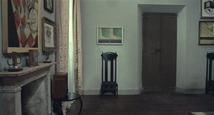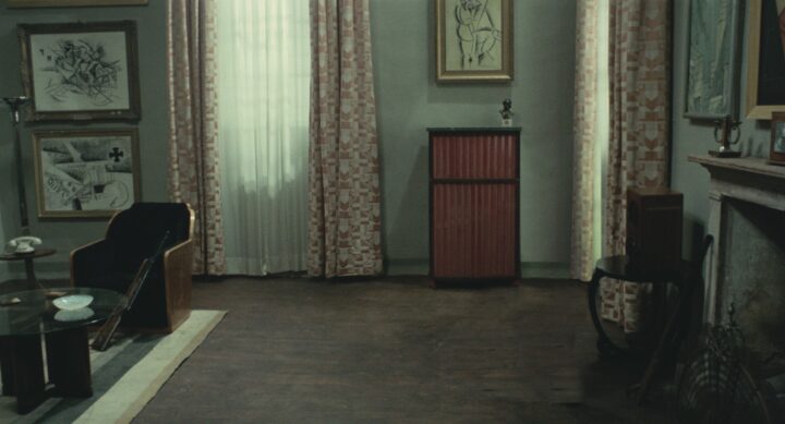 I examine Pasolini’s intentions by editing these frames and stripping them of all atrocities, victims, and perpetrators. The paintings in the background now become foreground. What remain are empty spaces with an ominous atmosphere. What took place here, or what is going to take place?
